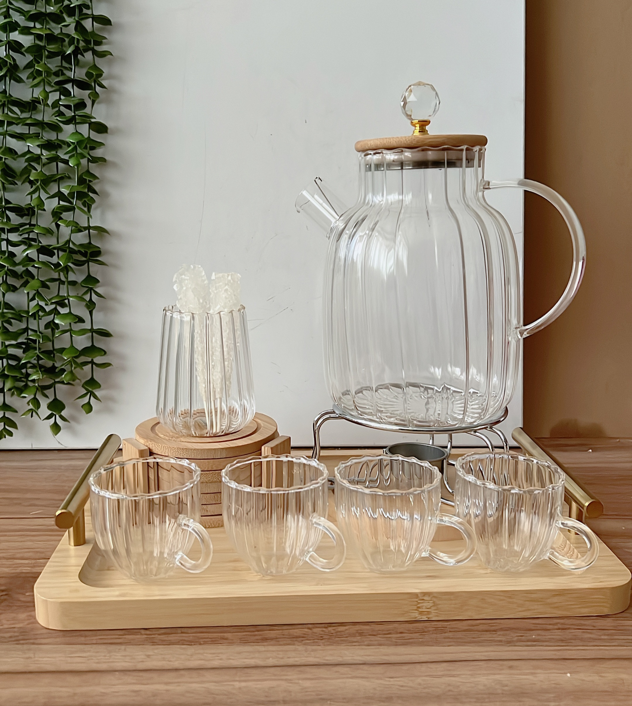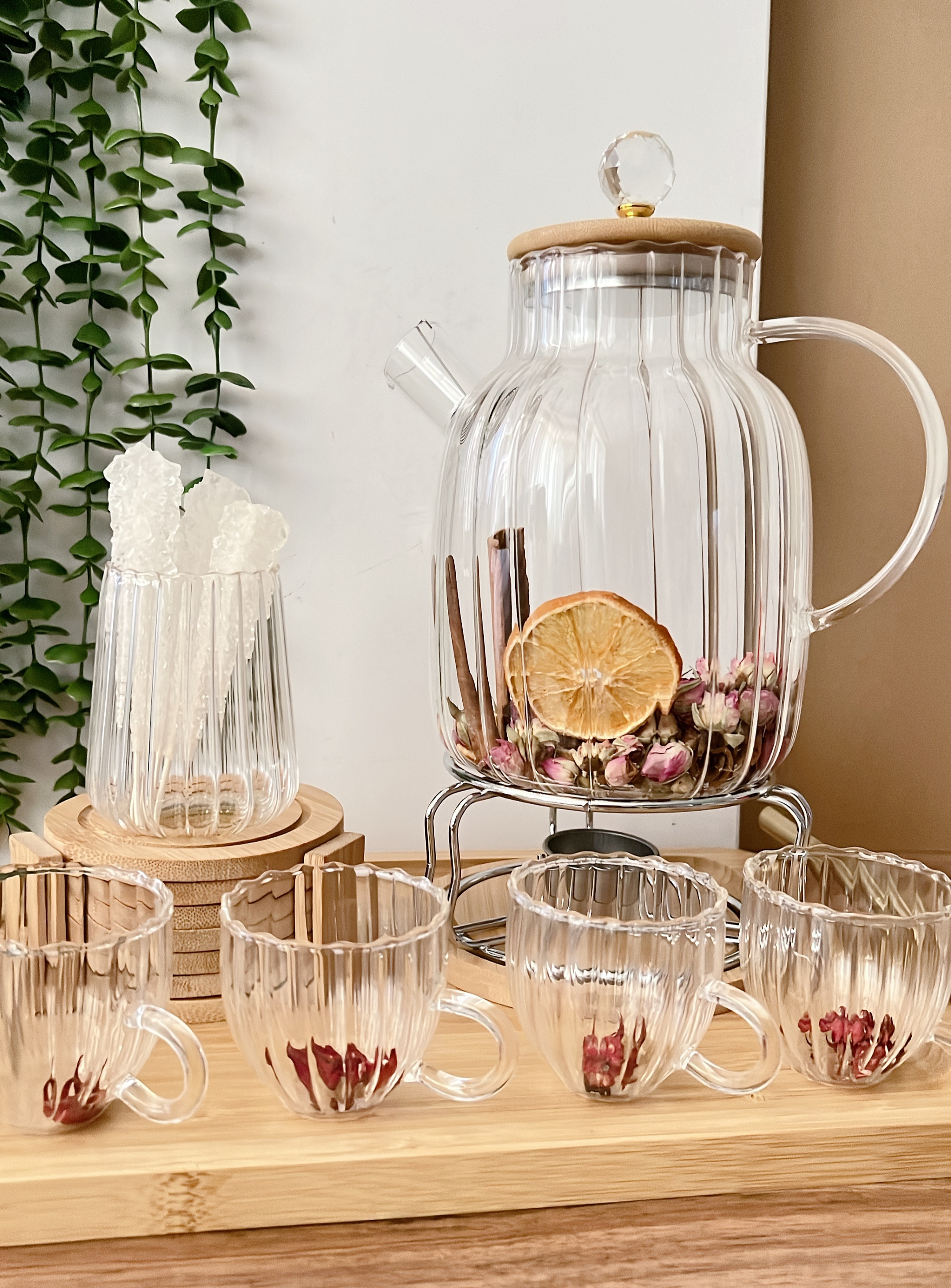قوری ۱۵۰۰ میل شیار درب الماس پیرکس شعله مستقیم